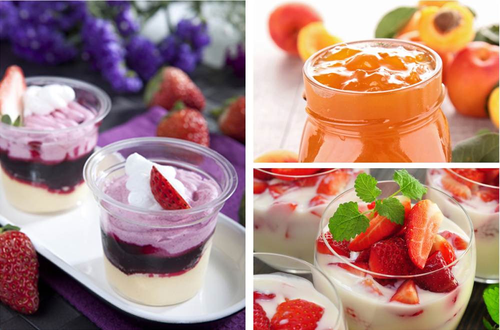 冰品果酱细软、酸甜,保留水果的酸甜清爽与芬芳;烘焙抹酱适合于用做烘焙食品的原料,是鲜香可口的月饼、糕点、蛋糕等烘焙食品的优质新型馅料、夹心或用来掐花。圣代果酱细软、味道鲜美、色彩可人、适合做圣代。